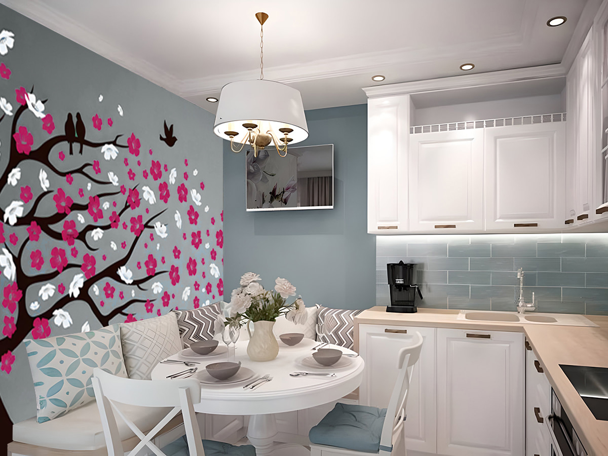 В отличие от фресок и фотообоев, роспись не ограничена по размеру, не царапается, легко моется и точно передает нужные оттенки цветов!